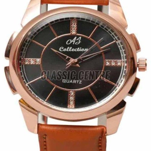 Rose Gold Leather Strap Analog Watch For Men